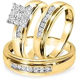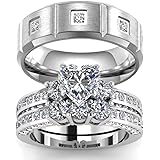 Wedding Ring Set Two Rings His Hers Couples Rings Women S 10k Yellow Gold Filled White Cz Wedding Engagement Ring Bridal Sets Men S Titanium Wedding Band Crystal Stone Metal Cubic Zirconia